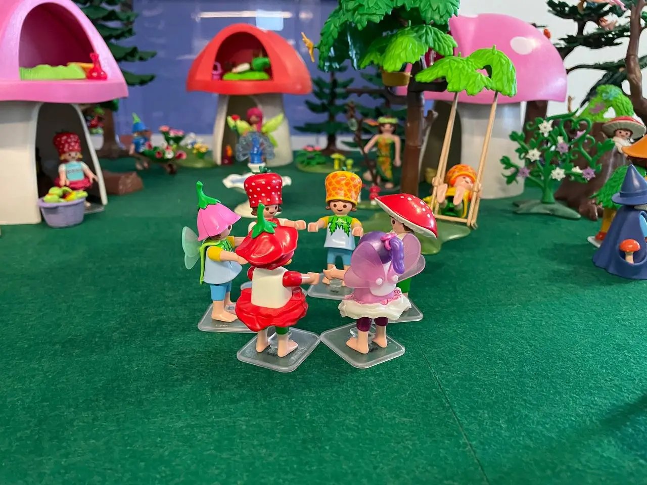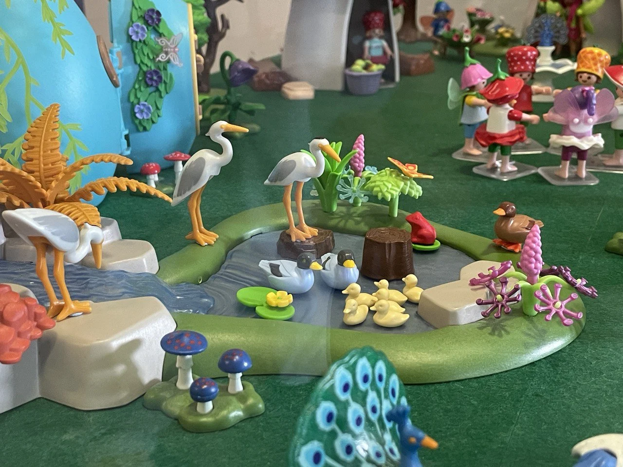 El pueblo de casitas de seta donde los niños-hada juegan alegremente… Dos magníficos barcos mágicos tripulados por hadas siendo recibidos con entusiasmo por delfines y elfos…