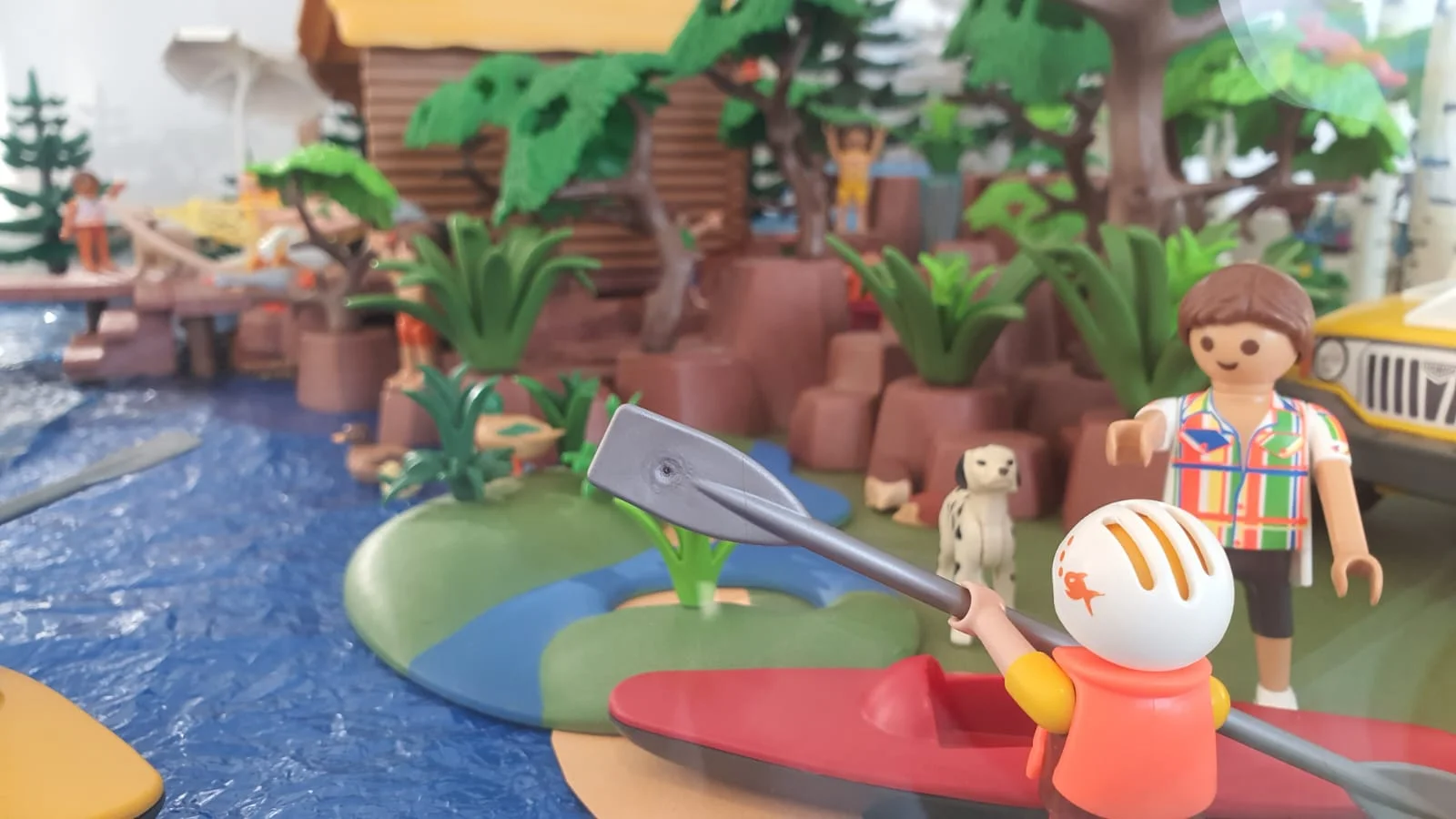 Todo el conjunto forma una escena llena de color y dinamismo, donde cada figura parece contar su propia pequeña historia dentro de este paisaje en miniatura.