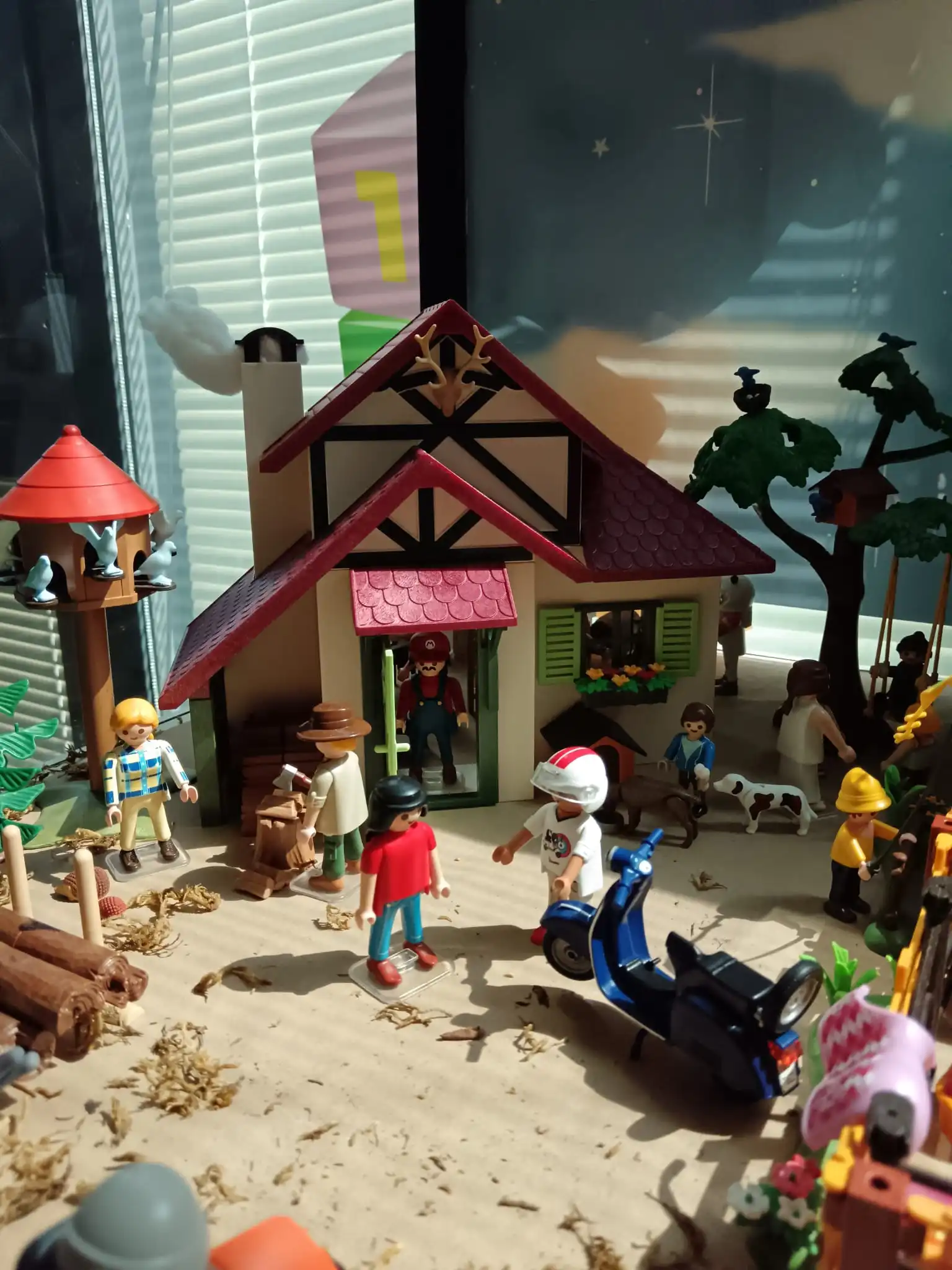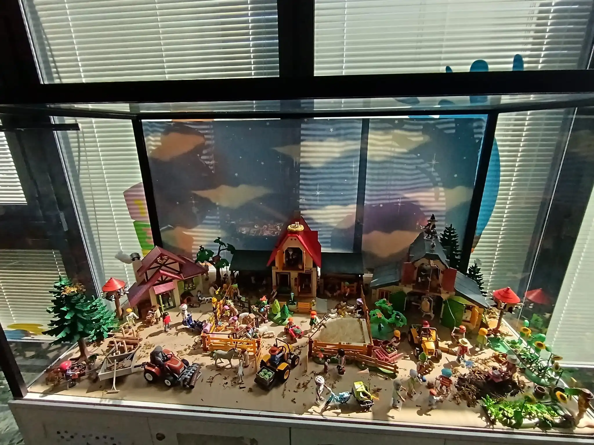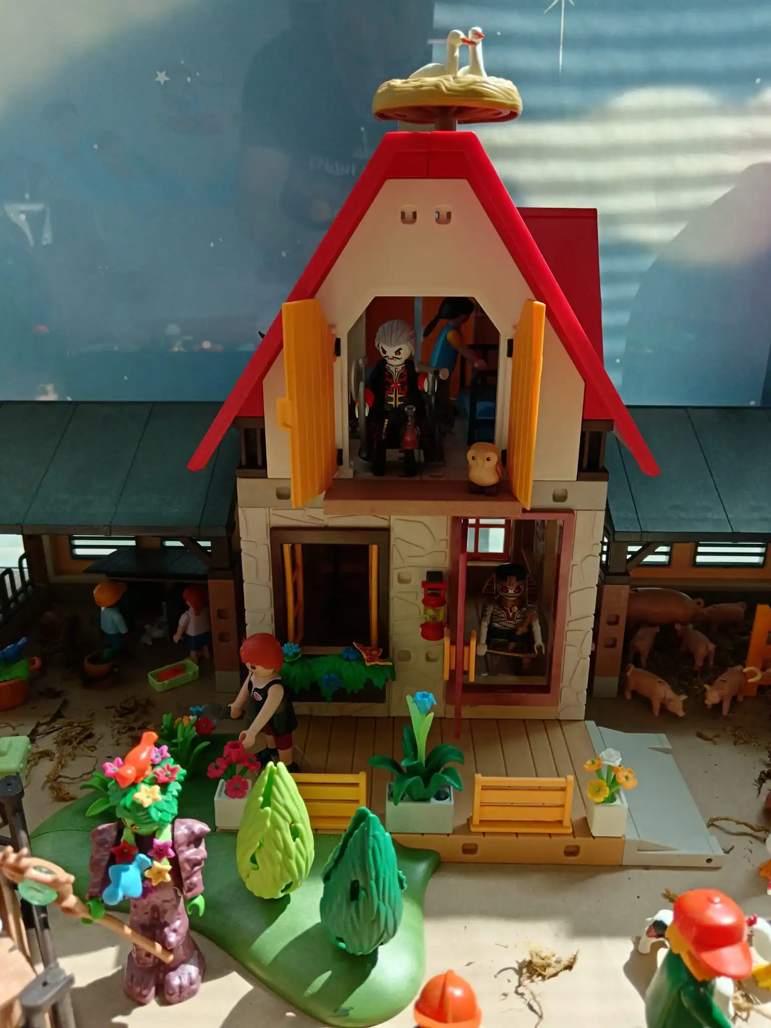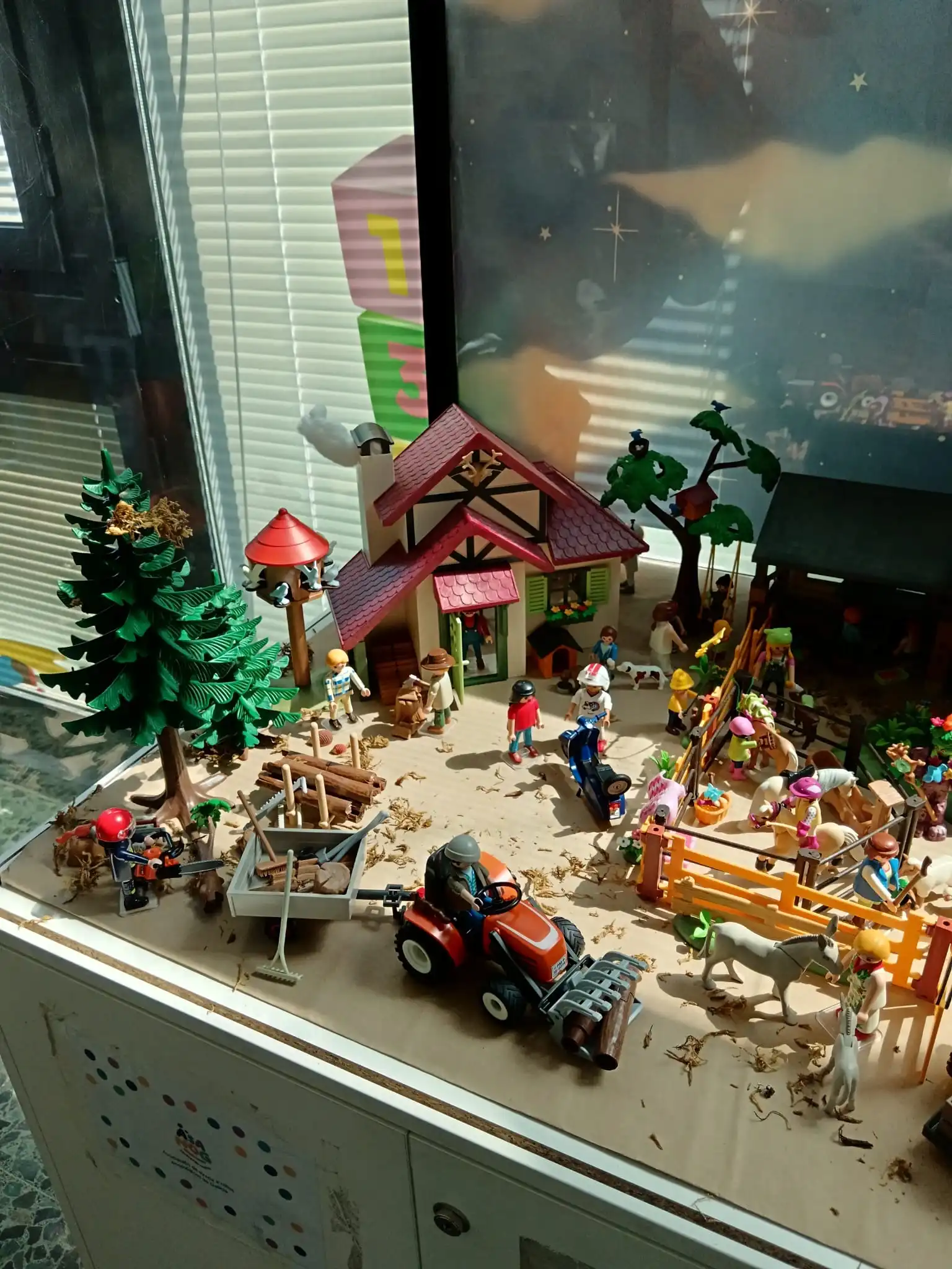 En este diorama de Playmobil, nos trasladamos a una encantadora granja donde la vida cotidiana transcurre con tranquilidad y armonía. Los granjeros cuidan de los animales, recogen los productos del campo y realizan pequeñas labores agrícolas, reflejando la esencia del trabajo rural. En cada rincón se puede ver la dedicación y el esfuerzo, desde el ordeño de las vacas hasta la alimentación de los caballos, pasando por la recolección de frutas y verduras frescas.